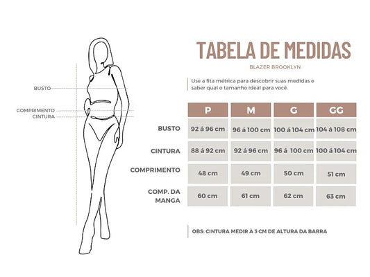 O Blazer Brooklyn da Maite Miyao combina sofisticação e estilo urbano. Confeccionado em alfaiataria listrada (90% Poliéster, 10% Elastano; forro 100% Poliéster), possui modelagem estruturada, fechamento duplo com botões e corte cropped, perfeito para composições que vão do casual ao formal.